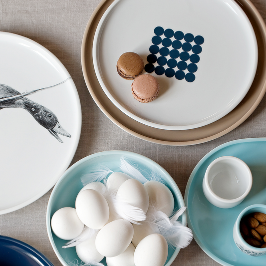 teller 24 . geißblatt mit punkt . mandarinenschalen .