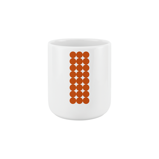 becher mit henkel . glückspfennig . handgespritzt außen .
