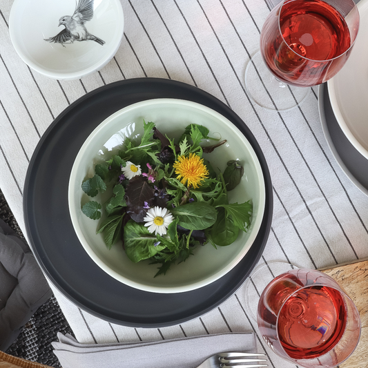 set 11 . farbe pur . 4x teller 28 cm + 4x teller 21 cm tief