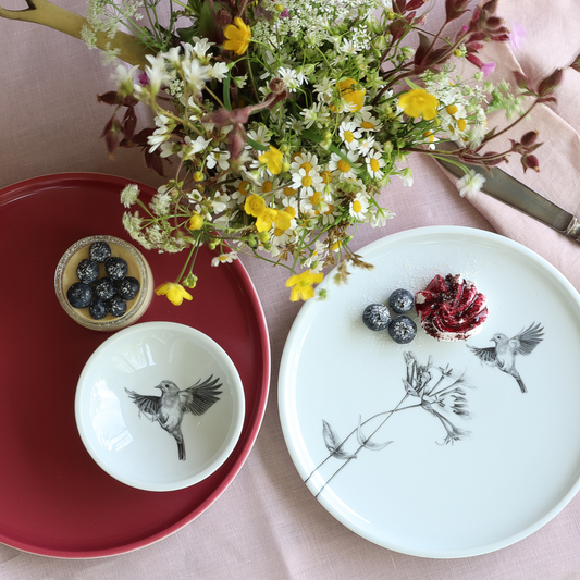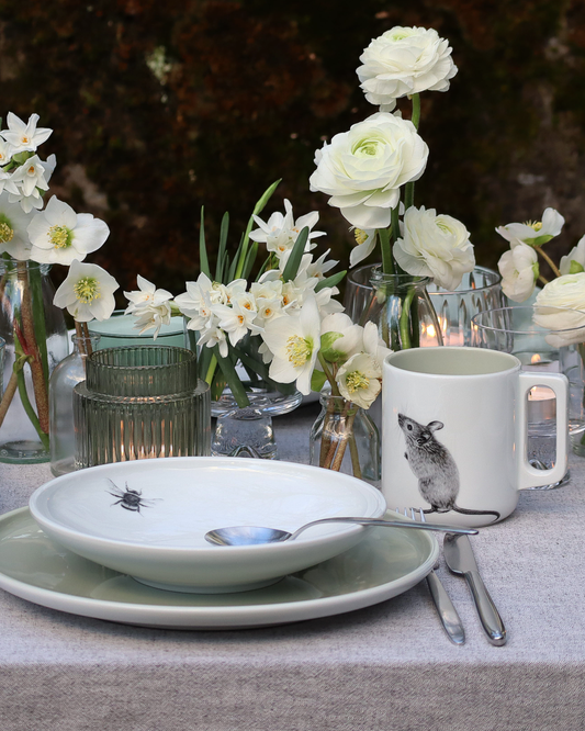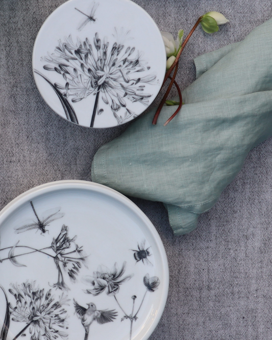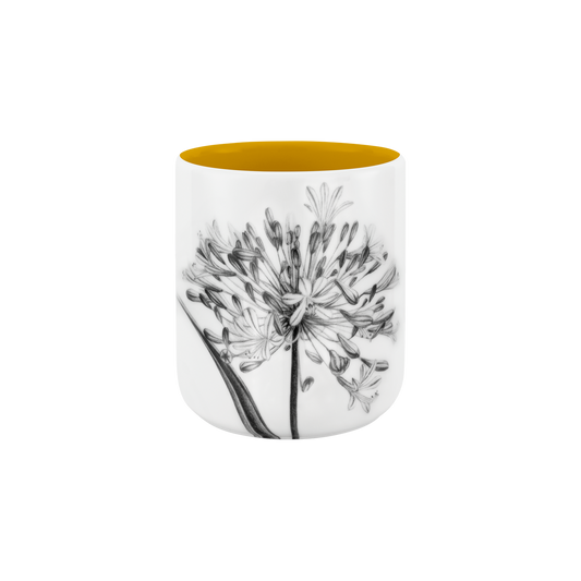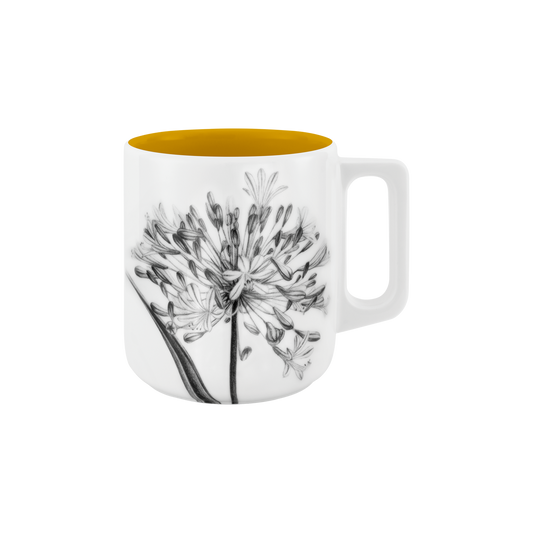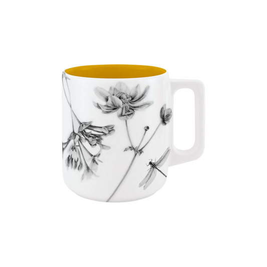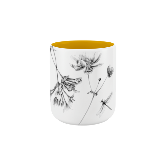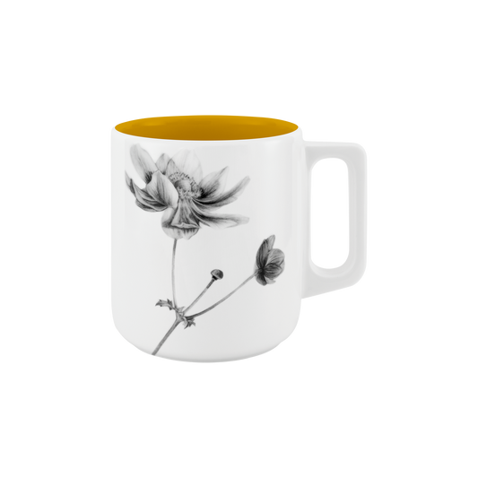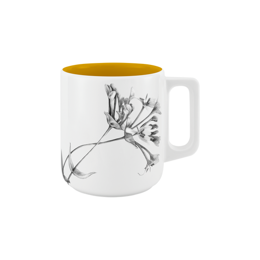sieh doch, die blüten. wie sie sich sanft im wind wiegen, mit ihrem tanz die insekten verführen und uns mit ihren perfekten formen faszinieren. selbst als bleistiftzeichnung können wir ihren duft erahnen. auf dem becher genauso schön wie in der vase.