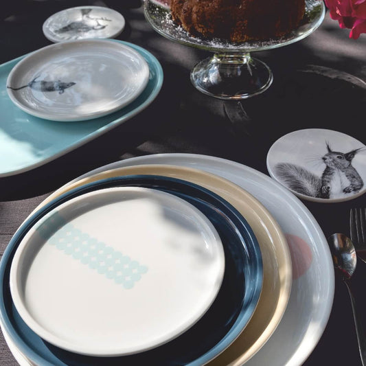 teller 21 . im schatten des abends . handgespritzt .