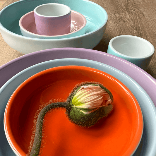 teller 21 tief . mandarinenschalen . handgespritzt .