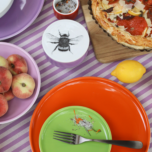 teller 28 . mandarinenschalen . handgespritzt .