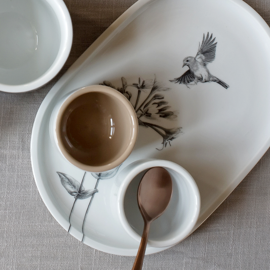 platte 23x16 . geißblatt mit rotkehlchen .