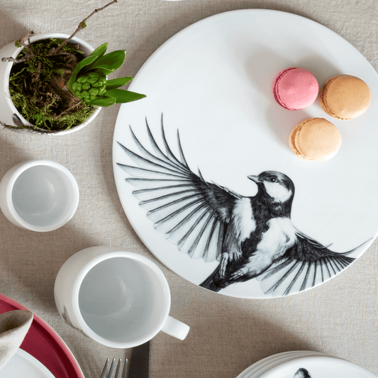 platte 26 . kohlmeise im anflug mit punkten .
