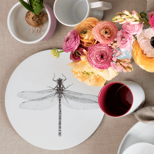 platte 30x19 . schmucklilie mit libelle .