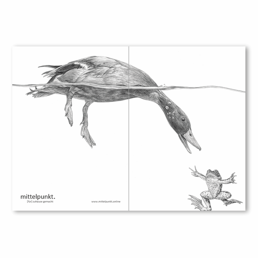 klappkarte mit umschlag . ente grüßt frosch .