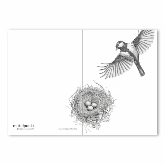 klappkarte mit umschlag . kohlmeise mit nest .
