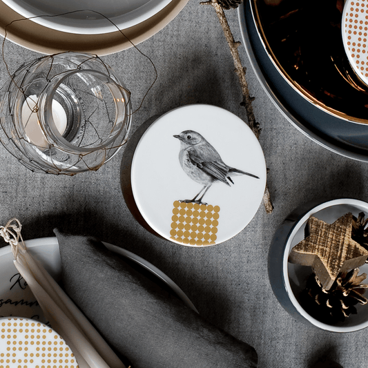 deckel 11 . untersetzer . rotkehlchen punkte 6x7 . glockenläuten .