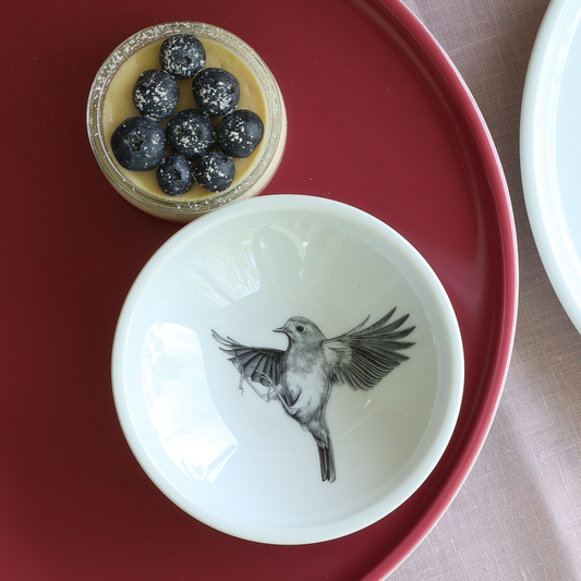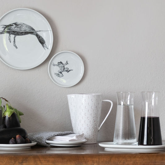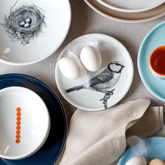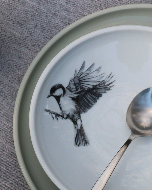 schau nach oben. dort ziehen sie ihres weges, die reiher. so groß und beeindruckend wie elegant und wunderschön. jedes jahr aufs neue ein schauspiel, von dem du die augen nicht abwenden kannst, und immer viel zu schnell vorbei. bis sie zum nächsten mal vorbeikommen, kannst du sie und viele andere vögel auf deinem geschirr bestaunen.