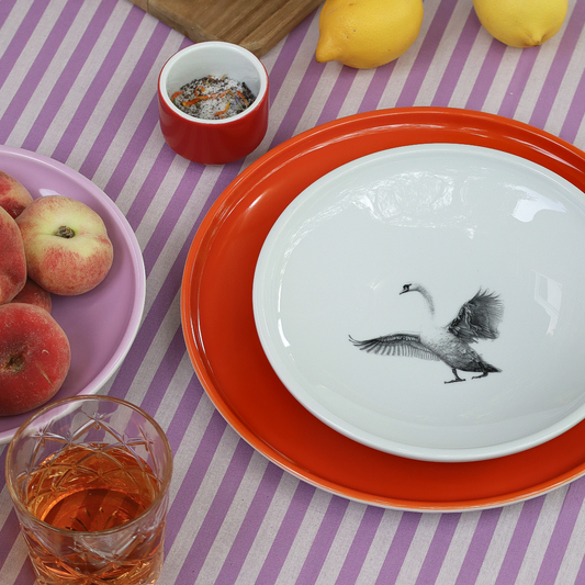 schau nach oben. dort ziehen sie ihres weges, die reiher. so groß und beeindruckend wie elegant und wunderschön. jedes jahr aufs neue ein schauspiel, von dem du die augen nicht abwenden kannst, und immer viel zu schnell vorbei. bis sie zum nächsten mal vorbeikommen, kannst du sie und viele andere vögel auf deinem geschirr bestaunen.
