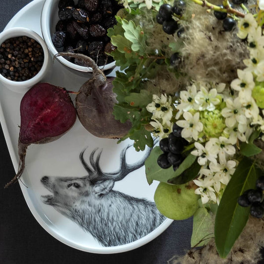 platte 30x19 . hirsch wildes fest .