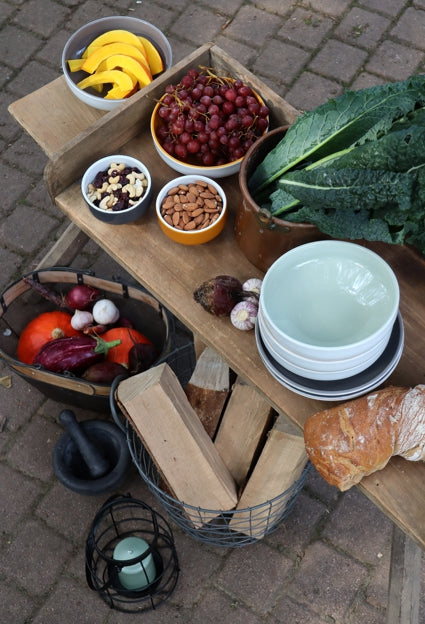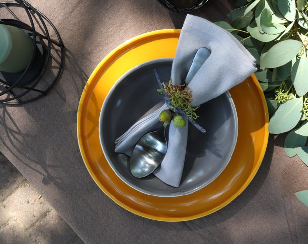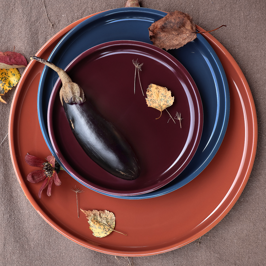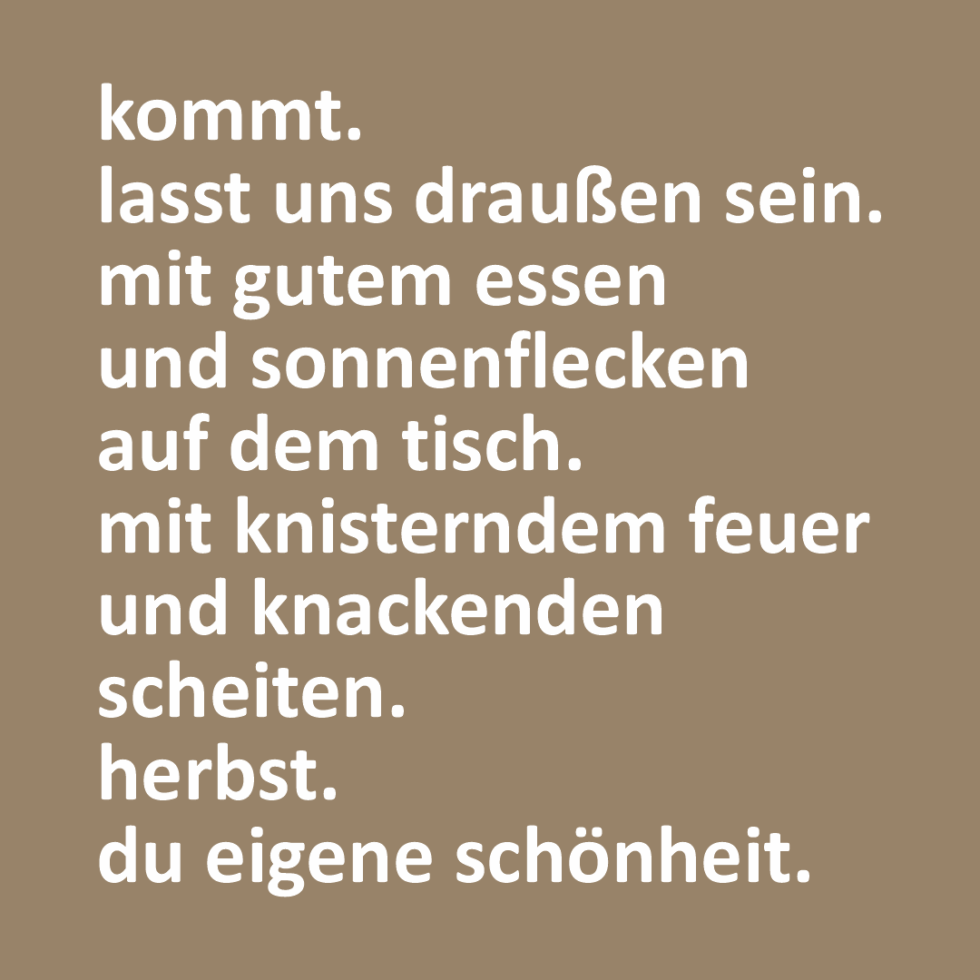 wenn die tage kürzer und auch mal etwas regnerisch und trüb werden, ist es schön, sich die ganz besonderen farben dieser jahreszeit ins haus zu holen. oder bei passendem wetter sogar nochmal draußen zu essen.