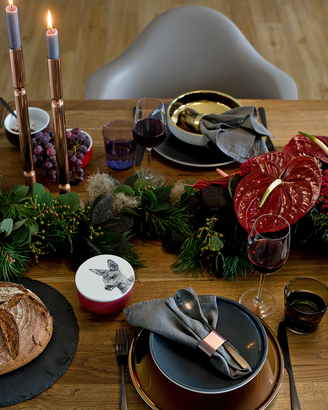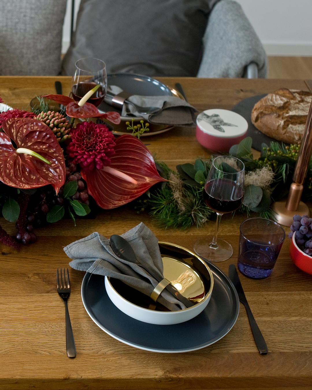 mit dunklem rot verbinden wir auch sinnlichkeit und wärme, was zum festmenü in der kalten hahreszeit besonders gut passt.