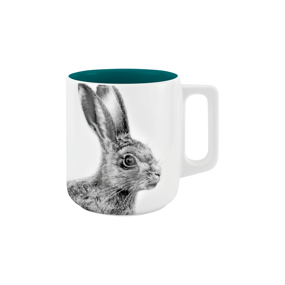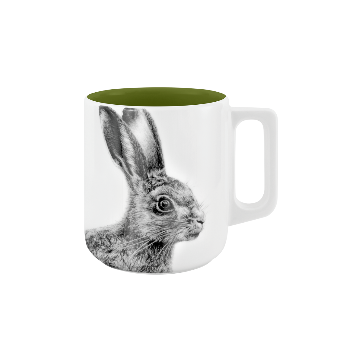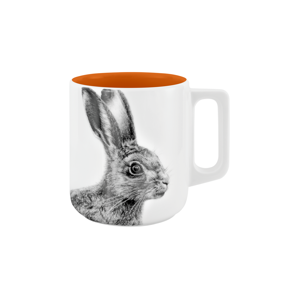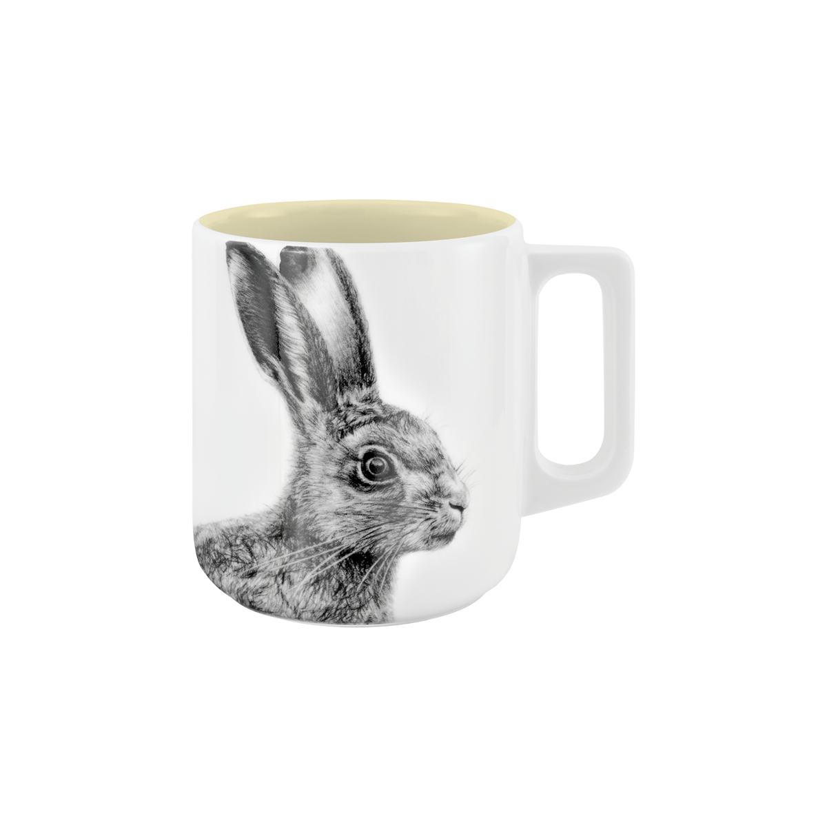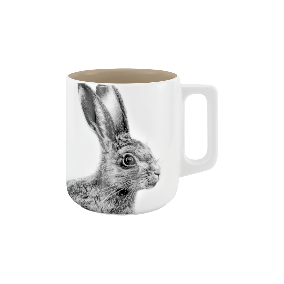 becher mit henkel . innen farbig . hase .