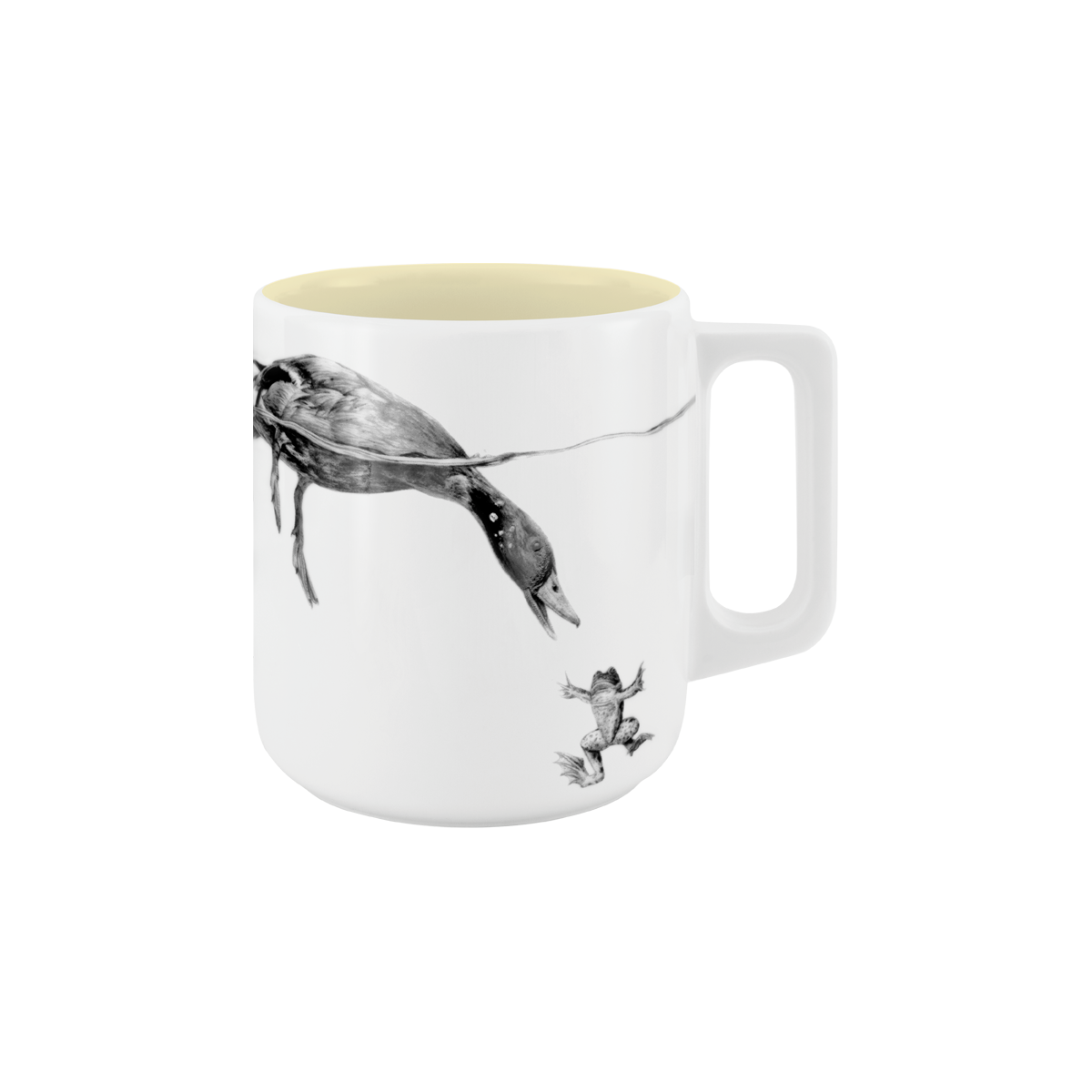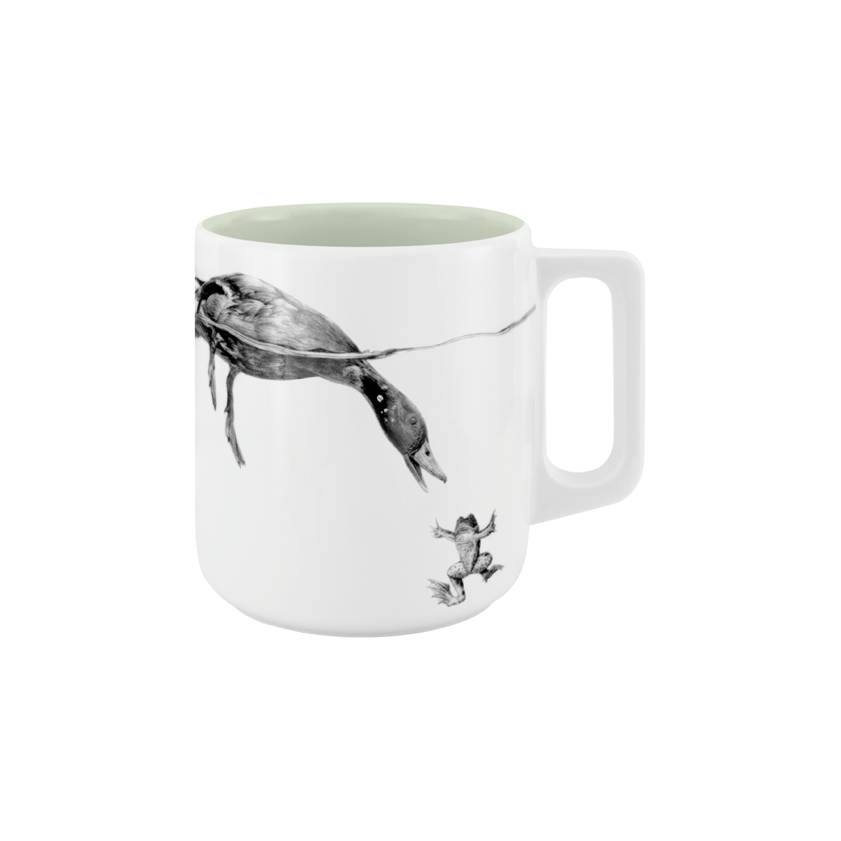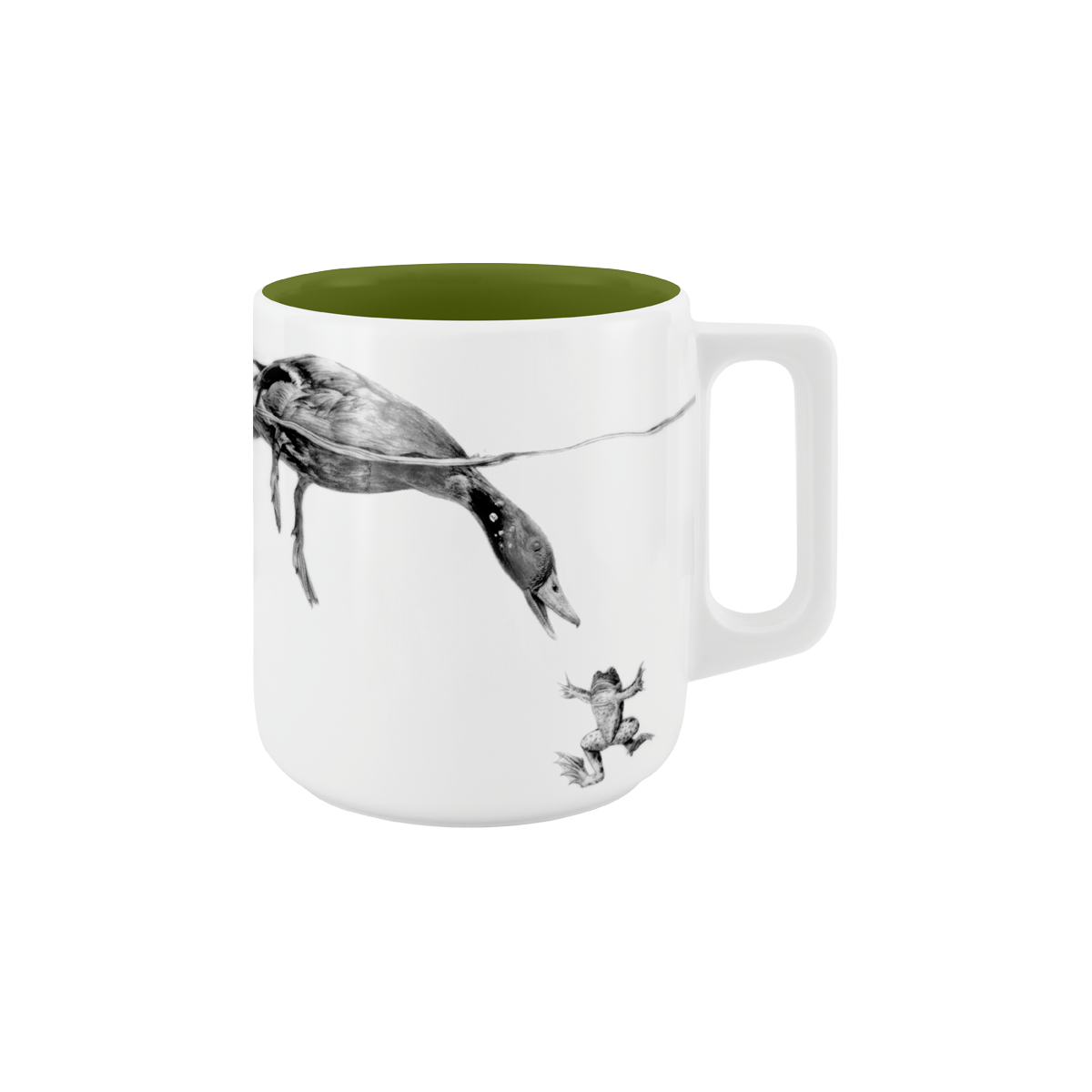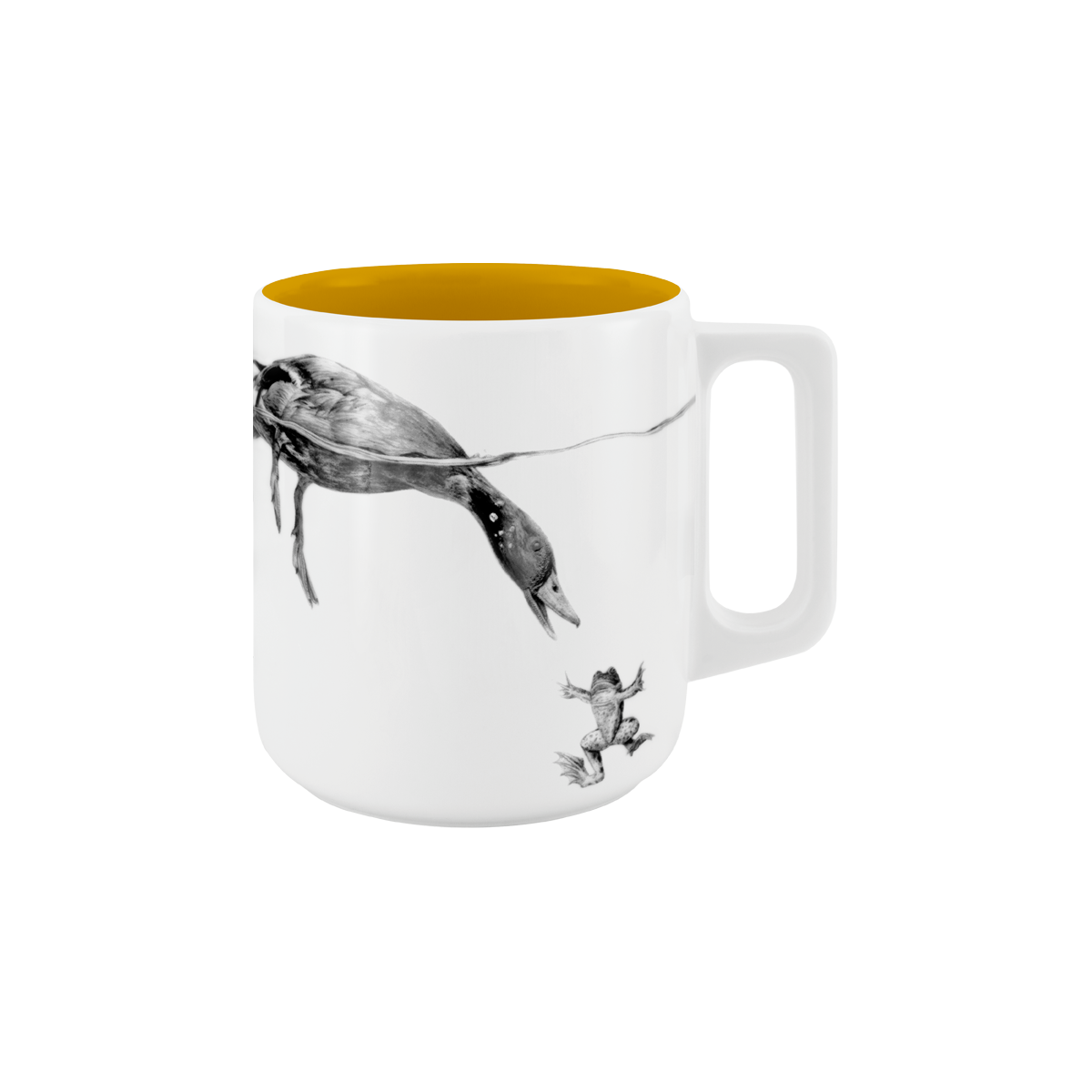becher mit henkel . innen farbig . ente grüßt frosch .